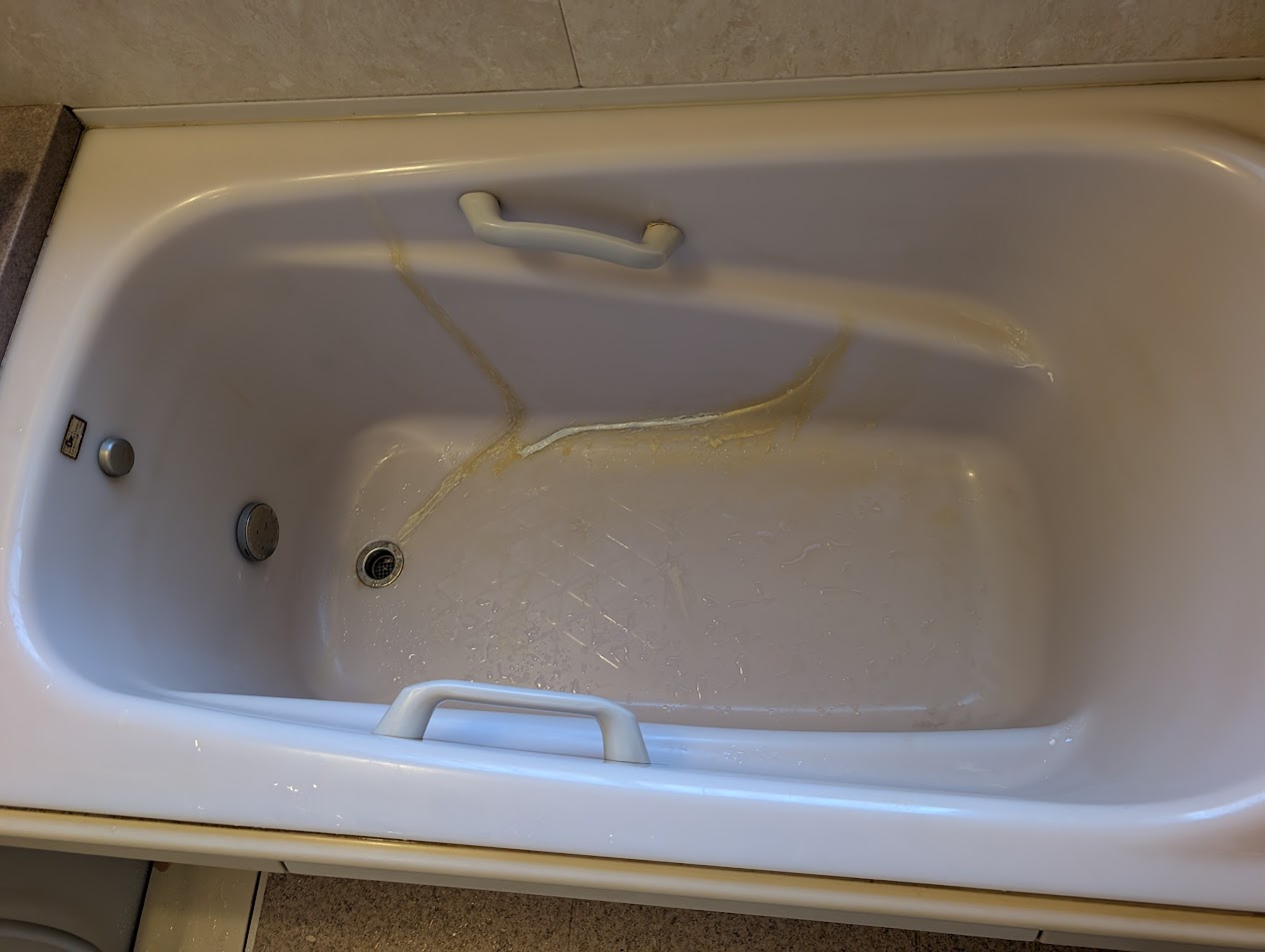 施工内容:人工大理石製浴槽の割れ補修・再生施工