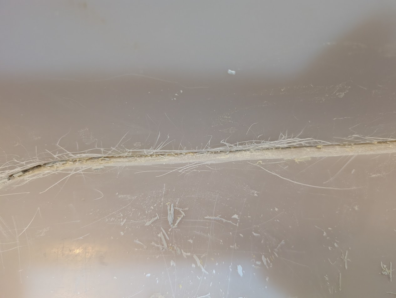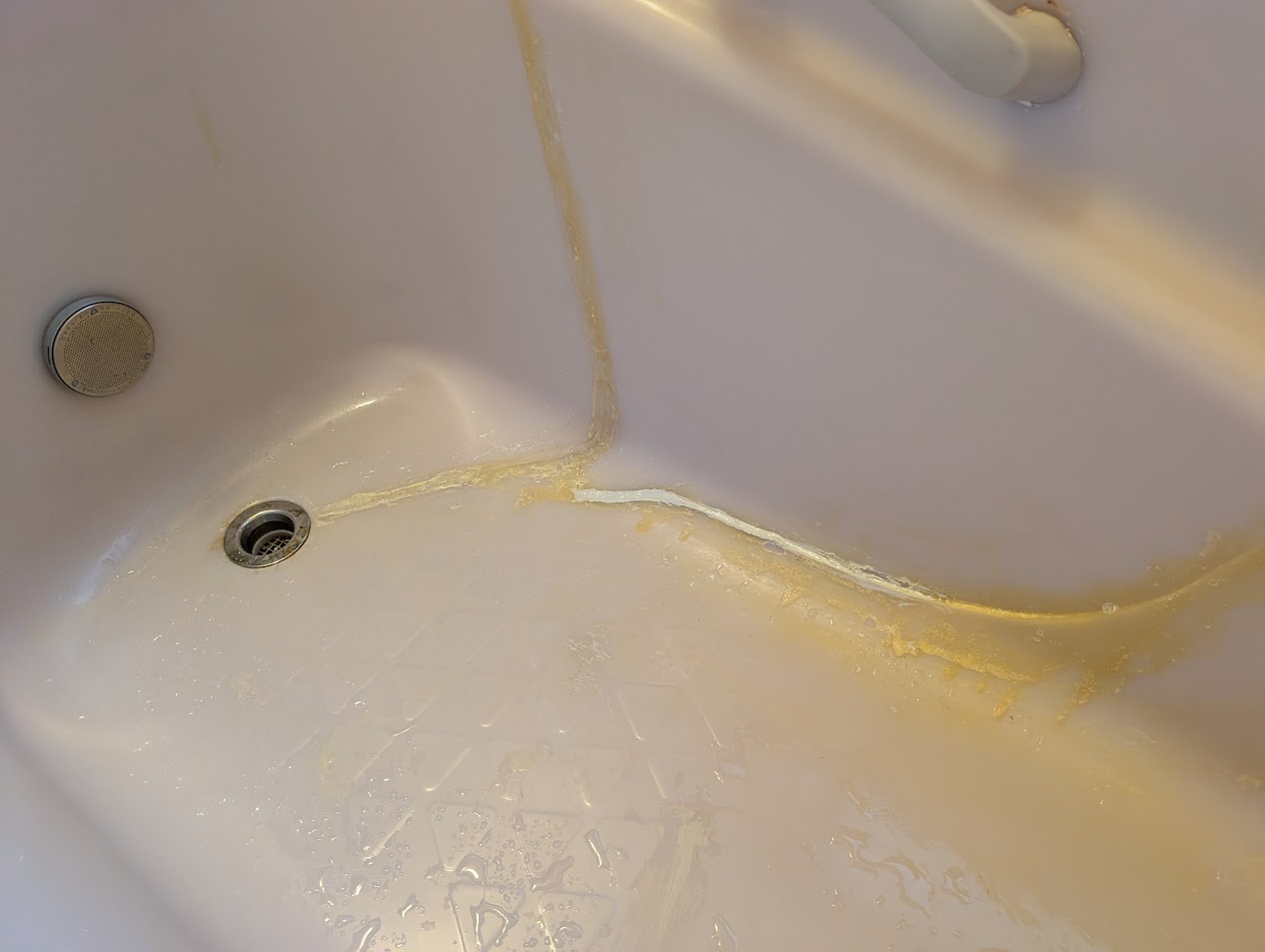 お客様のご自宅には大きな人工大理石製の浴槽がありましたが、経年劣化により大きな割れが発生。家主様はこれまでバスコークやボンドで補修しながら何とか使用されていましたが、ついにお湯がどんどん減ってしまう状態に——。