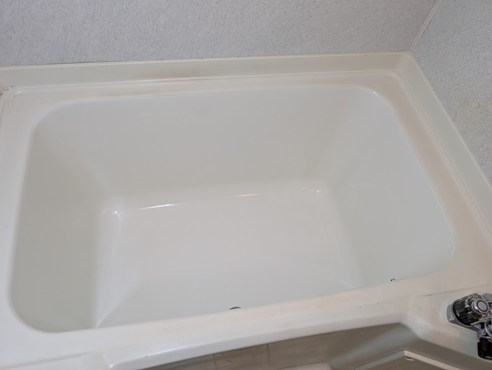FRP浴槽のひび割れ補修と再生塗装工事を終える事ができました。